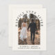 Elemento de creme leve e orçamental ou anúncio de casamento e convite de recepção. A frente mostra sua foto do dia de casamento em um quadro arquitetado e "Feliz Sempre Depois" em tipografia elegante. Sob sua foto, adicione seus nomes, data do casamento e local. No verso, você pode personalizar sua mensagem em mais detalhes e adicionar detalhes de festa ou recepção e seus nomes em um script semelhante a assinatura.
