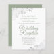 Estes convites para recepções de casamento baratos, amigáveis ao orçamento são a escolha perfeita para classe, estilo e beleza em um orçamento. Projetados para convidados para a recepção, mas não para a cerimônia, eles apresentam um fundo branco clássico com ornamentados de folha de alumínio prateada e espirais nos cantos. A tipografia inclui rico sage green color script lettering para um estilo simples e elegante. Uma maneira maravilhosa de convidar seus amigos e família para compartilhar sua alegria em seu dia especial sem quebrar o banco.