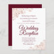 Estes convites para recepções de casamento baratos, amigáveis ao orçamento são a escolha perfeita para classe, estilo e beleza em um orçamento. Projetados para convidados para a recepção, mas não para a cerimônia, eles apresentam um fundo branco clássico com ornamentados de folhas falsas e rosa de ouro nos cantos. A tipografia inclui a inscrição de um rico burgundy para um estilo simples e elegante. Uma maneira maravilhosa de convidar seus amigos e família para compartilhar sua alegria em seu dia especial sem quebrar o banco.