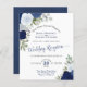 Estes belos convites para recepções de casamento são feitos para convidados que são convidados apenas para a recepção, e não para a cerimônia de casamento. O elegante design apresenta rosas pintadas manualmente de aquarela em tons de azul, marinho e índio empoeirados, com um bando de folhas de jardim e verde. A tipografia apresenta a caligrafia da escrita do rico, e a parte de trás é uma cor azul-real profundamente marmoreada. Amigo do orçamento e barato, estes convites são a forma perfeita de celebrar o seu casamento sem gastar uma fortuna nos convites.