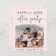 Folheto de papelão, cor-de-rosa, ou anúncio privado de casamento e convite de festas de recepção ou celebração que mostra sua foto, "Feliz eterno partido" em uma simples tipografia moderna e um roteiro de caligrafia com picos, e seus nomes e data de casamento. No verso, personalize seu anúncio e os detalhes do convite da parte ou recepção e adicione seus nomes em um script semelhante a assinatura.