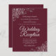 Estes convites para recepções de casamento baratos, amigáveis ao orçamento são a escolha perfeita para classe, estilo e beleza em um orçamento. Projetados para convidados para a recepção, mas não para a cerimônia, eles apresentam um fundo de burgundy, maron ou vinho tinto com ornamentado de touca fina nos cantos. A tipografia inclui a inscrição em cinza pálida rico para um estilo simples e elegante. Uma maneira maravilhosa de convidar seus amigos e família para compartilhar sua alegria em seu dia especial sem quebrar o banco.