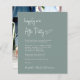 Mínimo elopemento verde de sábio ou anúncio privado de casamento e convite de recepção de casamento apresentando "Felizmente Nunca Depois da Festa" em um roteiro branco chic, seu convite na tipografia serif branca clássica e seus nomes em um roteiro branco tipo assinatura. O verso mostra sua foto, nomes e datas de casamento e recepção.
