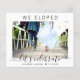 Um elopeio de orçamento ou um anúncio de casamento menor para deixar a família e os amigos que você fugiu ou reduziu o número de convidados no seu casamento para um pequeno grupo íntimo, e convidá-los para uma festa de recepção de casamento ou celebração. A frente apresenta sua foto e "Nós Elografamos o Celebrado de Vamos" em uma mistura de simples tipografia e roteiro, e seus primeiros nomes e data de casamento. Ao contrário, você pode personalizar sua mensagem e convite com mais detalhes e seus nomes em um script semelhante a assinatura.