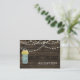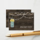 Rustic Barnwood, luzes de cordas balançando com flores amarelas em um convite de recepção de casamento de jarro mason. Produtos correspondentes também disponíveis.