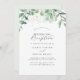Este elegante convite de recepção de casamento verde é perfeito para uma simples festa de elopeamento poste. O moderno elegante design apresenta uma disposição botânica natural de eucalipto, folhas e plantas com um sutil sotaque de hortelã verde-aquarela. As placas RSVP são vendidas separadamente ou você pode adicionar informações RSVP à parte traseira da placa.