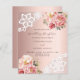 Para uma recepção de casamento elegante e romântica. Um fundo rosa de gradiente dourado decorado com florais, rosas e rendas de ouro rosa e rosa. Personalize e adicione seus nomes e detalhes. 1 folha = 1 convite impresso de borda a borda.