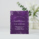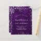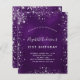 Um convite moderno, na moda e glamouroso para uma festa de aniversário de 21 ruas (ou qualquer idade). Um fundo roxo profundo, colorido, com pó falso de cinza prateada. A cor roxa é irregular. O nome é escrito com um moderno estilo escrito à mão. Personalize e adicione os detalhes da sua festa.