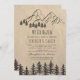 Celebre o seu amor cercado pela natureza com este convite para renovação de votos em terras arbóreas. Apresentando uma serena floresta de pinheiros e uma silhueta de montanha sobre um fundo de papel kraft falso, esta design captura a beleza do excelente ao ar livre. Perfeito para uma celebração acolhedora e romântica, ele dá o tom para uma cerimônia inesquecível inspirada na montanha. Note que o fundo de papel kraft é um gráfico de alta qualidade e não um papel kraft real.