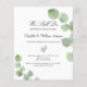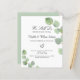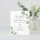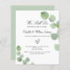 Um fundo branco decorado com verde de eucalipto, galhos. Personalize e seu nome e detalhes da cerimônia. Fundo verde.