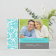 Elegante renovação do casamento renovações personalizadas de modelos de fotos em azul-celestial, azul-azul-azul-turquesa, cinzas escuras de carvão e padrão floral clássico de vintage branco, com texto totalmente personalizável para incluir os detalhes da sua cerimônia de renovação de votos. Entre em contato conosco para obter uma cor personalizada.