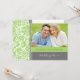 Elegante renovação do casamento renovações personalizadas de modelos de foto convites em verde de maçã brilhante e elegante, cinzas escuras de carvão e padrão floral clássico de vintage branco, com texto totalmente personalizável para incluir os detalhes da sua cerimônia de renovação de votos. Entre em contato conosco para obter uma cor personalizada.