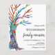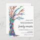 Convide sua família para a Reunião da Família com este convite para na moda. Ele apresenta uma árvore genealógica nas cores do arco-íris e espaço para você personalizar com seu nome de família e seus detalhes. Este design único é um impressão do meu mosaico da Árvore Familiar, que foi feito de pequenos pedaços de vidro de cor clara. Mosaico original © Michele Davies.