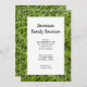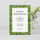 Convide parentes para sua próxima reunião ao ar livre ou churrasco no quintal com o Convite à Reunião da Família Verde. Esta reunião casual personalizada da família apresenta uma fotografia de uma natureza próxima de um gramado verde. Perfeito para um evento familiar ou churrasco mantido ao ar livre na grama verde de um parque, floresta ou gramado do quintal.