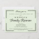 Clique em "personalizar" para alterar o plano de fundo para uma cor clara ou média de luz da sua escolha. As bordas da esquina estão cheias de cipós folhosas para melhorar o seu convite de reunião. Veja mais convites na Genealogy Gretures aqui no Zazzle. Há um link de loja direto abaixo.