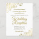 Estes convites para recepções de casamento baratos, amigáveis ao orçamento são a escolha perfeita para classe, estilo e beleza em um orçamento. Projetados para convidados para a recepção, mas não para a cerimônia, eles apresentam um fundo branco clássico com ornamentado de caramujos e espirros nos cantos. A tipografia inclui a escrita em ouro de rico para um estilo simples e elegante. Uma maneira maravilhosa de convidar seus amigos e família para compartilhar sua alegria em seu dia especial sem quebrar o banco.