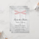 Convite elegante e simples para salvar a data do casamento, apresentando um dragonfly rosa contra um fundo cinza desgastado. Este design é uma escolha única para anunciar um casamento moderno. Fácil de personalizar com os detalhes do seu casamento. Clique em "Personalize" para encontrar mais opções de personalização.