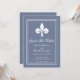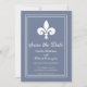 Convite elegante e simples de salvar a data do casamento, apresentando uma flor-de-lis contra um fundo azul empoeirado. Este design é uma escolha única para anunciar um casamento moderno. Fácil de personalizar com os detalhes do seu casamento. Clique em "Personalize" para encontrar mais opções de personalização.