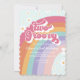 Dois segundo aniversário do Groovy Retro Rainbow convidados com margaridas.