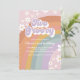 Dois segundo aniversário do Groovy Retro Rainbow convidados com margaridas.
