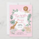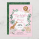 Adorado com charmosos bichos Safari, este convite de segundo aniversário brilha em matizes cor-de-rosa e verdes. Nosso tema "Dois Selvagens" a rosa é uma escolha cativante para compartilhar notícias sobre a próxima comemoração de sua filhinha. Basta pressionar o botão de edição para adaptar este design aos detalhes específicos do evento.