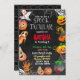 Chamada de Aniversário do Dia de Verão de Halloween Cartão de convite de aniversário feminino de tema "Cute halloween", com ilustração de abóboras, fantasmas e teias de aranha.