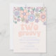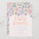 Retro inspirou dois convites de aniversário da Groovy com flores do estilo 70 e fontes e cores boho.