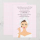 Convide a noiva e as amigas para se glamourizar e se preparar para a festa com este Convite de Sessão de Maquiagem e Spa. O fundo rosa "azulejo de banho" apresenta uma mulher aplicando maquiagem com o cabelo enrolado em uma toalha. O cartão é fácil de personalizar com sua redação, fonte, cor da fonte e escolha de seis tipos de papel.