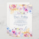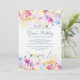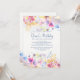 Este convite floral colorido apresenta um amplo espectro de cores e uma variedade de florins em uma borda correspondente de cima e de baixo. Adequado para qualquer celebração feminina.