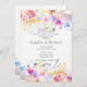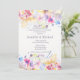Este convite floral colorido apresenta um amplo espectro de cores e uma variedade de florins em uma borda correspondente de cima e de baixo. Adequado para qualquer celebração feliz.