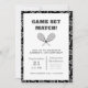 Sirva uma celebração vencedora com este convite de tênis de aniversário com raquetes negros e brancos, bolas de tênis e tipografia divertida. Perfeito para um tênis de criança, aniversário com tema desportivo ou evento de tênis, este design dá o tom para um dia divertido e ativo. Personalize com os detalhes da sua festa e impressiona seus convidados com este convite de jogo moderno para rapazes que adoram tênis.
