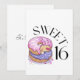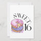Este convite exibe as palavras "Sweet 16" em uma fonte de impressão única em letras pretas, apresentando donuts com recheio e confeitos neste tema e estilo de aniversário de Sweet 16. Impresso em um papel clássico, de todos os lados, com 17,5 pt de espessura e acabamento fosco não revestido com textura de casca de ovo, feito e impresso nos EUA, com "It's A Party" impresso no verso.