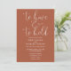 Este convite de casamento de guião elegante do terracotta pode ser personalizado com todas as suas informações especiais sobre o dia do casamento. Projetado por Thisnotme©