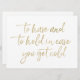 Um letreiro "Para ter e guardar em caso de você ficar frio no casamento" com letras à mão elegantes