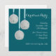 convite de festas da casa de Natal costeira. Prendendo dólares de areia em um fundo colorido escuro com texto esbranquiçado. Os cartões quadrados modernos vêm com envelopes brancos, e os dólares de areia podem ser removidos para mostrar ornamentos tradicionais se sua festa não for tropical.
