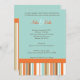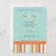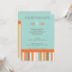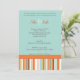 Convite para tomar banho de bebê laranja e azul. Design apresenta listras modernas em laranjas impressionantes, azuis, castanhos e brancos.