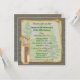Convite para festa ou torneio de golfe rústico com um toque de envelhecido. Sacolas de golfe com tacos em papel vintage desgastado com pinheiros desbotados, contra um fundo de madeira. Perfeito para aniversário, torneio, aposentadoria, despedida de solteiro ou reunião familiar. O verso é decorado com pinheiro transparente e tacos cruzados. Ilustração desenhada à mão por McBooboo.