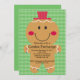 Comece sua festa de férias de inverno bem com nosso convite para troca de cookies fofinhos apresentando um homem giro e giro vestindo um chapéu vermelho em uma xadrez verde de gingham. ©Pink Design