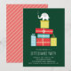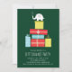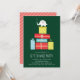 Este é um convite de festa de Natal com troca de presentes de elefante branco, apresentando presentes e ilustração de elefante.