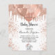 Para um chá de fraldas, comemorando uma menina. Um fundo branco chic. Decorado com rosa dourado, brilho rosado, pintura pingando, balões e uma menina elefante de bebê. Personalize e adicione o nome da futura mãe e os detalhes da festa. O nome e o texto: Chá de fraldas são escritos com um script de estilo manuscrito