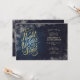 Convite Horizontal para uma Noite sob as Estrelas com tipografia elegante e manuscrita de “Uma Noite sob as Estrelas”. Este design inclui elementos de azul escuro, dourado e um fundo de noite estrelada. Inclui um modelo para personalização.