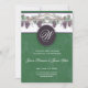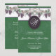 Este convite para o casamento apresenta um desenho de aquarela antiquado de uvas roxas numa videira com uma aparência texturizada verde. O oval roxo escuro inclui um monograma personalizável que você pode mudar. Perfeito para o casal que ama todas as coisas roxas (ou vinho!). O papel selecionado é champanhe metálico - você pode mudar o estilo do papel se quiser ajustado seu tema.