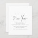 Há duas opções de papel a escolher para esse tamanho (4,5 x 5,6") na faixa de Orçamento. Para este produto, eu recomendaria o semibrilho, que é um estoque de cartão de 110 gsm, semelhante em espessura a um cartão postal. A opção Satin é um papel muito mais fino, 80gsm. O padrão é definido como semirbrilho. POR FAVOR, NOTE que existe UM por folha. Convite de festas de Véspera de ano novo de Texto Simples do Orçamento. Estilo minimalista. Ano Novo está em um elegante e moderno roteiro e o resto do texto que você pode personalizar facilmente.