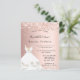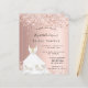 Um convite moderno, na moda e glamouroso para um Chá de panela. Um fundo rosa dourado, gradiente de cinza com brilho sujo, faíscas e um vestido branco. O nome é escrito com um moderno estilo escrito à mão. Personalize e adicione os detalhes da sua festa.