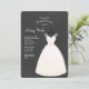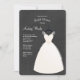 Um convite para crianças com um vestido de noiva, em um cabide, contra um fundo de carvão escuro. <br/>() O cartão é fácil de personalizar com sua redação, fonte, cor da fonte, opções de forma de papel e escolha de seis tipos de papel.<br/>() Não exatamente o que você está procurando? Todos os nossos produtos podem ser personalizados para atender às suas necessidades sem custo extra.<br/>() Basta entrar em contato conosco em askpixieprints@aol.com.<br/>() Coordenar os produtos disponíveis: Apenas nos pergunte!