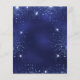 Um convite moderno, na moda e glamouroso para uma Quinceañera, festa de aniversário 15. Um fundo azul da meia-noite com poeira falsa, uma tiara e um vestido. A cor azul é irregular. O nome é escrito com um moderno estilo escrito à mão. Personalize e adicione os detalhes da sua festa.