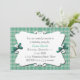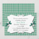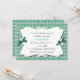 Bonito convite para xadrezes branca e verde. Uma área decorativa de texto branco se senta sobre o fundo da xadrez, pequenos e doces arcos verdes caçadores decoram os dois lados da área de texto. Personalize o texto de acordo com as necessidades do seu partido.