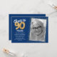 Celebre o grande marco de completar noventa anos com nossos convites de aniversário elegantes. Com um fundo azul moderno personalizável, um espaço para foto pessoal e detalhes em dourado, esses convites certamente deixarão uma impressão duradoura. Os detalhes do balão de hélio dourado adicionam um toque de magia, enquanto o modelo de texto de aniversário de 90 anos é fácil de personalizar. Porque o estilo não tem limite de idade!