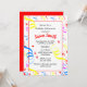 Este convite de aniversário festivo apresenta um fundo e uma cobertura coloridos de fita girada vermelha, azul e amarela. Use este convite para ela, adolescente adulto ou criança. Personalize o texto com as informações do seu partido Gráficos por pixabay