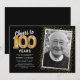 Convites de festa de aniversário de centenário elegantes com um fundo preto elegante que pode ser alterado para qualquer cor, uma foto da menina / menino aniversariante, brilho cintilante dourado, balões de hélio dourados de um centésimo e um modelo de texto de celebração de 100º aniversário moderno e fácil de personalizar.